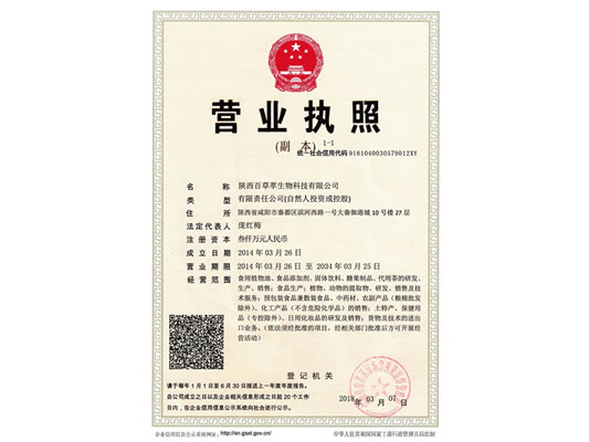 陜西百草萃生物科技有限公司,位于陜西省咸陽市秦都區(qū)濱河西路1號大秦御港城,公司成立于1996年,主要從事天然植物種植、研發(fā)、生產、加工、銷售為一體的高科技企業(yè)。主營醫(yī)藥原料、保健品原料、化妝品原料,精細化工原料。公司致力于人類健康保護事業(yè)“ 以科技為動力,以質量求生存” 的本質,依托陜西高新科技技術人才和科研優(yōu)勢,已形成多學科、全方位、高層次的技術管理精英團隊。充分利用秦巴山區(qū)的天然藥物資源,歷經多年發(fā)展為打造百草萃生物品牌奠定了基礎。